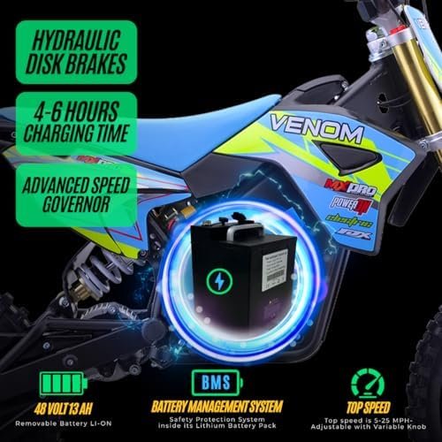 For thrill-seekers and adventure enthusiasts alike, the Venom 1600W PRO Electric Dirt Bike is the ultimate gear that’s packed with features, safety, and comfort. With its powerful performance and user-oriented design, exploring the great outdoors becomes an exciting possibility for every rider.